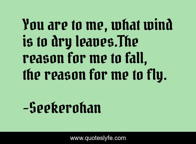 This page presents the quote "You are to me, what wind is to dry leaves.The reason for me to fall, the reason for me to fly.". Author of this quote is Seekerohan. This quote is about poem, love, micropoem, poetry, micropoetry, affection, seekerohan,.