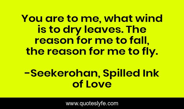 This page presents the quote "You are to me, what wind is to dry leaves. The reason for me to fall, the reason for me to fly.". Author of this quote is Seekerohan, Spilled Ink of Love. This quote is about poem, love, micropoem, poetry, micropoetry, affection, seekerohan,.