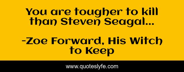 This page presents the quote "You are tougher to kill than Steven Seagal...". Author of this quote is Zoe Forward, His Witch to Keep. This quote is about death-reaper, paranormal-romance, witches,.