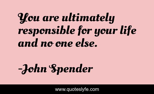 This page presents the quote "You are ultimately responsible for your life and no one else.". Author of this quote is John Spender. .