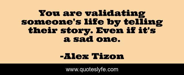 This page presents the quote "You are validating someone's life by telling their story. Even if it's a sad one.". Author of this quote is Alex Tizon. This quote is about life, story,.