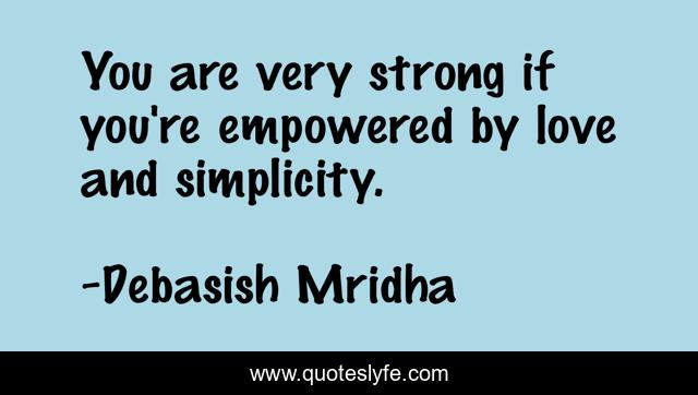 This page presents the quote "You are very strong if you're empowered by love and simplicity.". Author of this quote is Debasish Mridha. This quote is about miraboli, oscar-wilde, philosophy, debasish-mridha, empowered-by-love, quotes, simplicity, debasish-mridha-md, inspirational,.