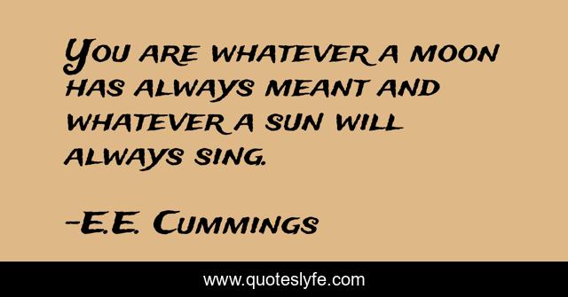 This page presents the quote "You are whatever a moon has always meant and whatever a sun will always sing.". Author of this quote is E.E. Cummings. .