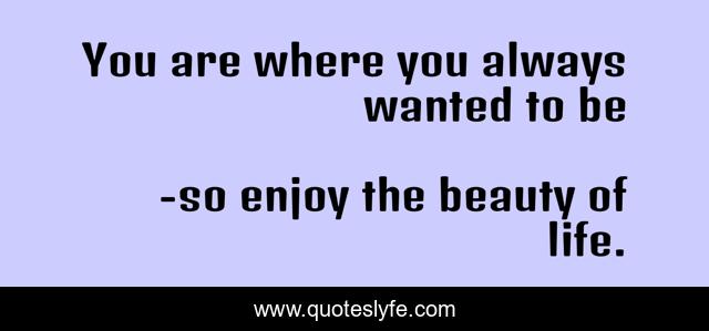 "so enjoy the beauty of life. Quotes." Quoteslyfe.com, 2025. Fri. 05 Dec. 2025. <https://www.quoteslyfe.com/quote/You-are-where-you-always-wanted-to-135530>.