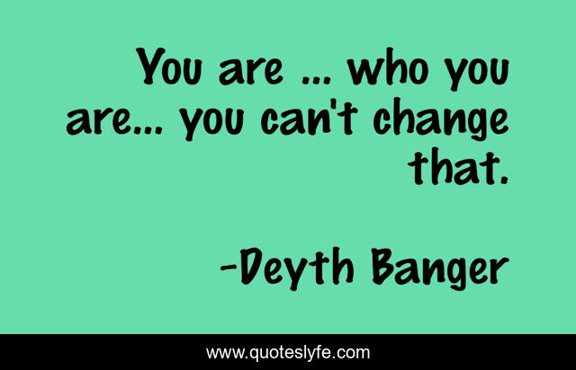 This page presents the quote "You are ... who you are... you can't change that.". Author of this quote is Deyth Banger. This quote is about changing, change,.