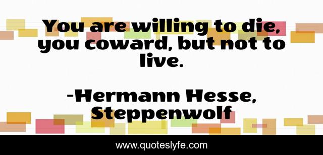 "Hermann Hesse, Steppenwolf Quotes." Quoteslyfe.com, 2025. Sat. 06 Dec. 2025. <https://www.quoteslyfe.com/quote/You-are-willing-to-die-you-coward-4131>.
