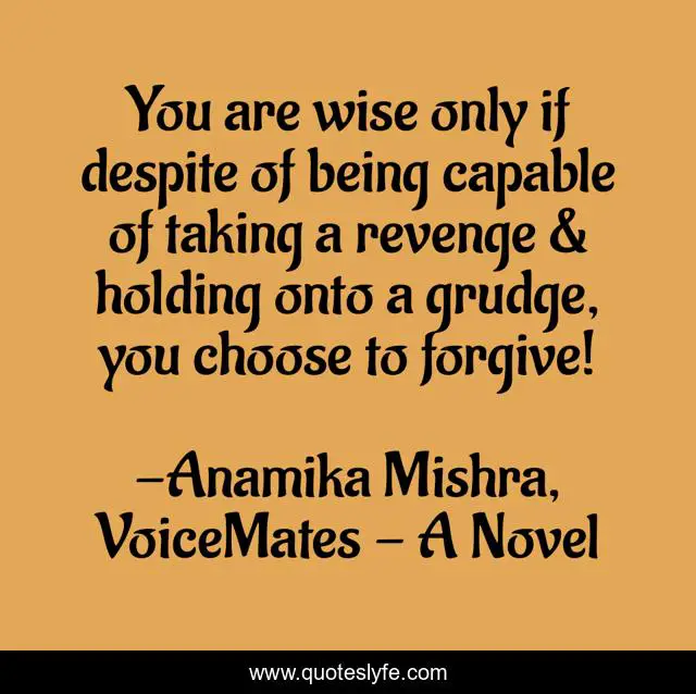 This page presents the quote "You are wise only if despite of being capable of taking a revenge & holding onto a grudge, you choose to forgive!". Author of this quote is Anamika Mishra, VoiceMates - A Novel. This quote is about life, love, wisdom, wise, affection, inspiration,.