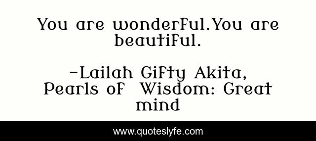 "Lailah Gifty Akita, Pearls of Wisdom: Great mind Quotes." Quoteslyfe.com, 2025. Tue. 09 Dec. 2025. <https://www.quoteslyfe.com/quote/You-are-wonderful-You-are-beautiful-199557>.