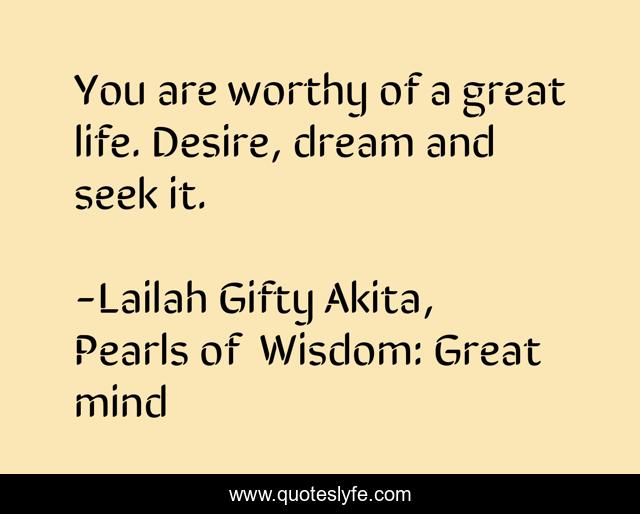 "Lailah Gifty Akita, Pearls of Wisdom: Great mind Quotes." Quoteslyfe.com, 2025. Sat. 06 Dec. 2025. <https://www.quoteslyfe.com/quote/You-are-worthy-of-a-great-life-34467>.