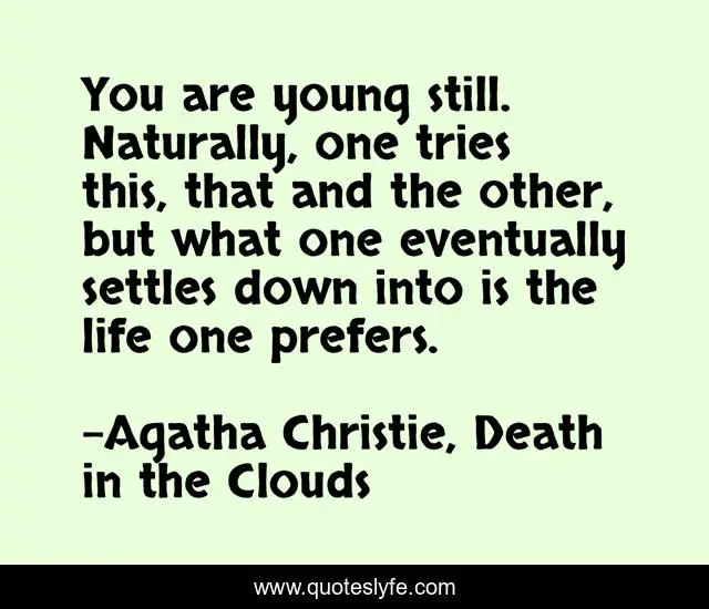 This page presents the quote "You are young still. Naturally, one tries this, that and the other, but what one eventually settles down into is the life one prefers.". Author of this quote is Agatha Christie, Death in the Clouds. This quote is about youth, life, work,.