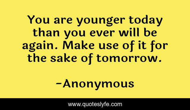 This page presents the quote "You are younger today than you ever will be again. Make use of it for the sake of tomorrow.". Author of this quote is Anonymous. .
