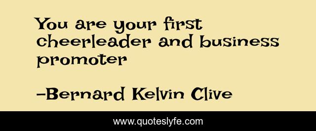 This page presents the quote "You are your first cheerleader and business promoter". Author of this quote is Bernard Kelvin Clive. This quote is about branding, promotion, business, marketing-advice,.