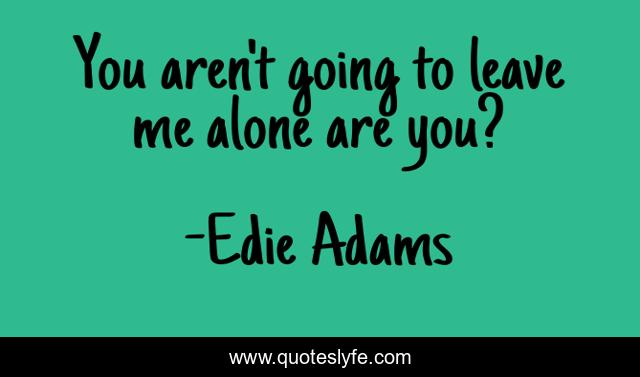 This page presents the quote "You aren't going to leave me alone are you?". Author of this quote is Edie Adams. This quote is about me, going,.