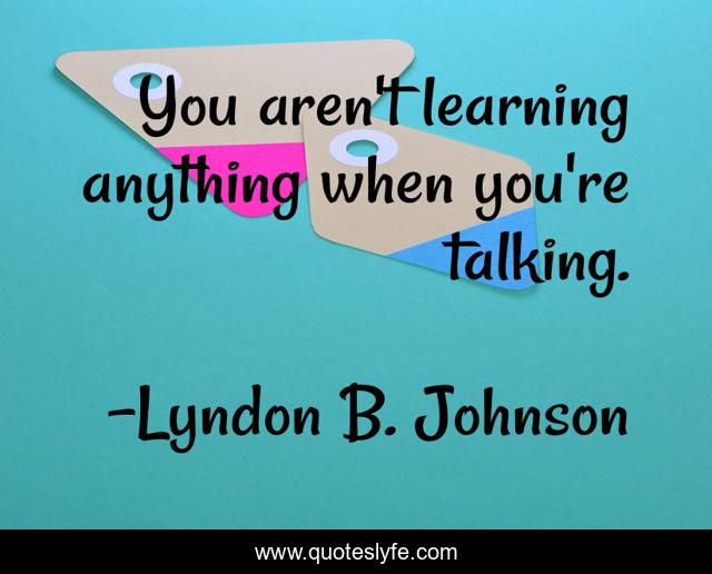 This page presents the quote "You aren't learning anything when you're talking.". Author of this quote is Lyndon B. Johnson. This quote is about talking, anything,.