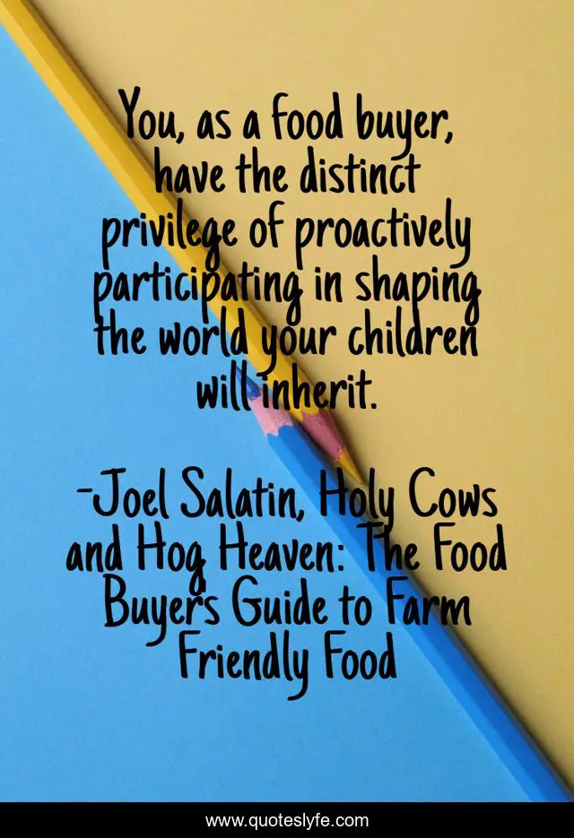 "Joel Salatin, Holy Cows and Hog Heaven: The Food Buyer's Guide to Farm Friendly Food Quotes." Quoteslyfe.com, 2025. Mon. 08 Dec. 2025. <https://www.quoteslyfe.com/quote/You-as-a-food-buyer-have-the-109868>.