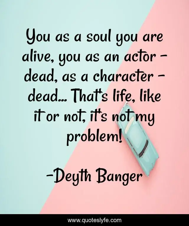 This page presents the quote "You as a soul you are alive, you as an actor - dead, as a character - dead... That's life, like it or not, it's not my problem!". Author of this quote is Deyth Banger. This quote is about actor, character, soul, dead, as, alive,.