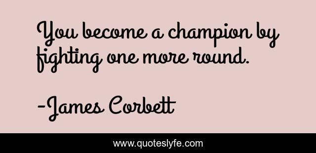 This page presents the quote "You become a champion by fighting one more round.". Author of this quote is James Corbett. This quote is about try-again, champion, fighting,.