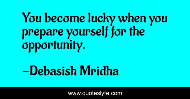 This page presents the quote "You become lucky when you prepare yourself for the opportunity.". Author of this quote is Debasish Mridha. This quote is about life, love, knowledge, inspirational, intelligence, philosophy, wisdom, quotes, affection,.
