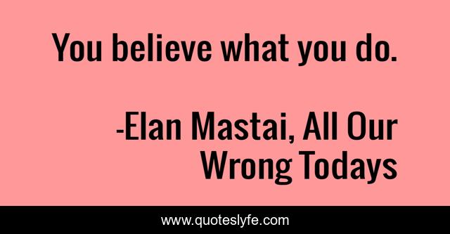 "Elan Mastai, All Our Wrong Todays Quotes." Quoteslyfe.com, 2025. Sat. 06 Dec. 2025. <https://www.quoteslyfe.com/quote/You-believe-what-you-do-166004>.