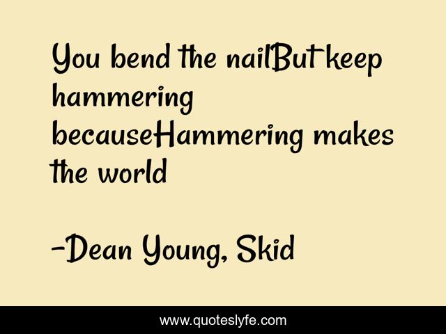 "Dean Young, Skid Quotes." Quoteslyfe.com, 2025. Fri. 05 Dec. 2025. <https://www.quoteslyfe.com/quote/You-bend-the-nailBut-keep-hammering-becauseHammering-25415>.