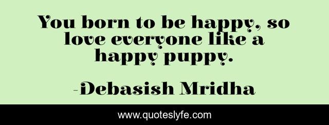 This page presents the quote "You born to be happy, so love everyone like a happy puppy.". Author of this quote is Debasish Mridha. This quote is about life, love, knowledge, inspirational, intelligence, philosophy, wisdom, quotes, affection,.