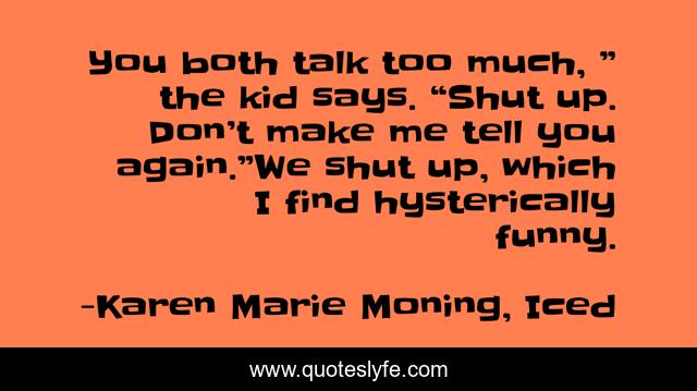 "Karen Marie Moning, Iced Quotes." Quoteslyfe.com, 2025. Sat. 06 Dec. 2025. <https://www.quoteslyfe.com/quote/You-both-talk-too-much-the-kid-165024>.