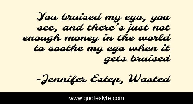 This page presents the quote "You bruised my ego, you see, and there’s just not enough money in the world to soothe my ego when it gets bruised". Author of this quote is Jennifer Estep, Wasted. This quote is about finnegan-lane, ego, humor,.