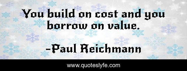 This page presents the quote "You build on cost and you borrow on value.". Author of this quote is Paul Reichmann. .
