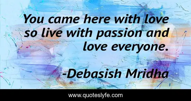 This page presents the quote "You came here with love so live with passion and love everyone.". Author of this quote is Debasish Mridha. This quote is about love, live-with-passion, philosophy, debasish-mridha, quotes, debasish-mridha-md, inspirational, enthusiasm, love-everyone,.
