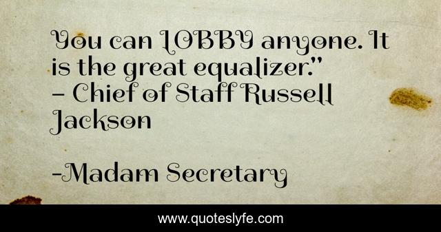 This page presents the quote "You can LOBBY anyone. It is the great equalizer." – Chief of Staff Russell Jackson". Author of this quote is Madam Secretary. This quote is about communication, persuasion,.