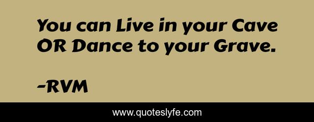 This page presents the quote "You can Live in your Cave OR Dance to your Grave.". Author of this quote is RVM. This quote is about motivation, inspiration,.