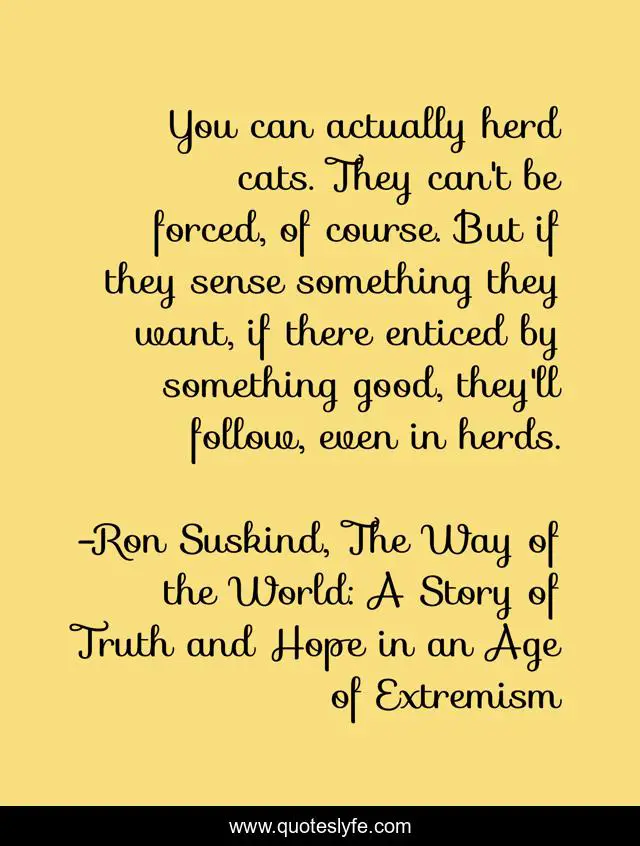 "Ron Suskind, The Way of the World: A Story of Truth and Hope in an Age of Extremism Quotes." Quoteslyfe.com, 2025. Fri. 05 Dec. 2025. <https://www.quoteslyfe.com/quote/You-can-actually-herd-cats-They-can-64971>.