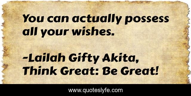 "Lailah Gifty Akita, Think Great: Be Great! Quotes." Quoteslyfe.com, 2025. Fri. 05 Dec. 2025. <https://www.quoteslyfe.com/quote/You-can-actually-possess-all-your-wishes-188356>.