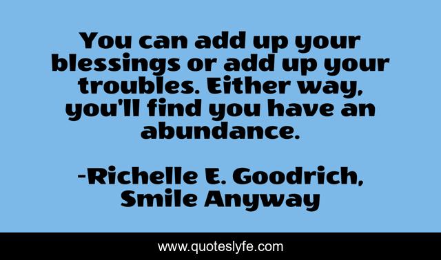 "Richelle E. Goodrich, Smile Anyway Quotes." Quoteslyfe.com, 2025. Fri. 05 Dec. 2025. <https://www.quoteslyfe.com/quote/You-can-add-up-your-blessings-or-179971>.