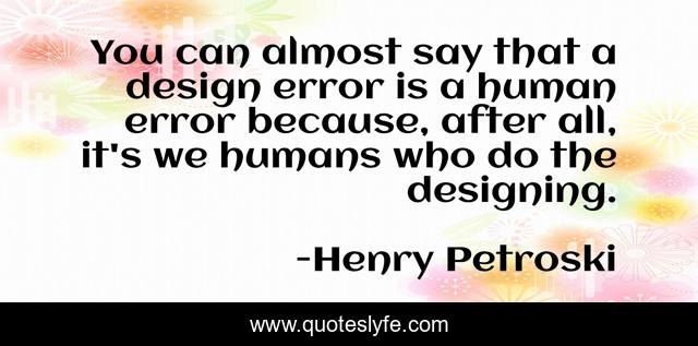 This page presents the quote "You can almost say that a design error is a human error because, after all, it's we humans who do the designing.". Author of this quote is Henry Petroski. .