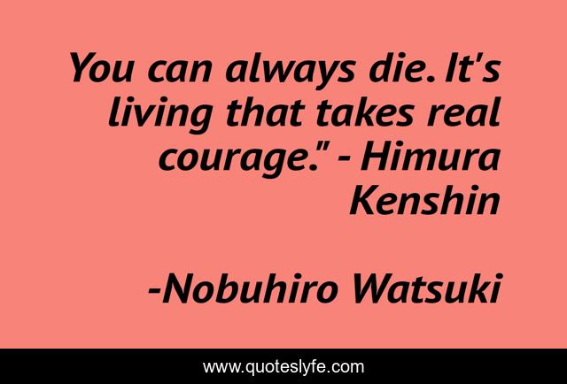 This page presents the quote "You can always die. It's living that takes real courage." - Himura Kenshin". Author of this quote is Nobuhiro Watsuki. This quote is about samurai, courage, manga,.