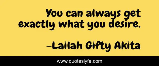 This page presents the quote "You can always get exactly what you desire.". Author of this quote is Lailah Gifty Akita. This quote is about desire, yourself, your-life, dreams-come-true, desire-to-live, dreams-do-come-true,.