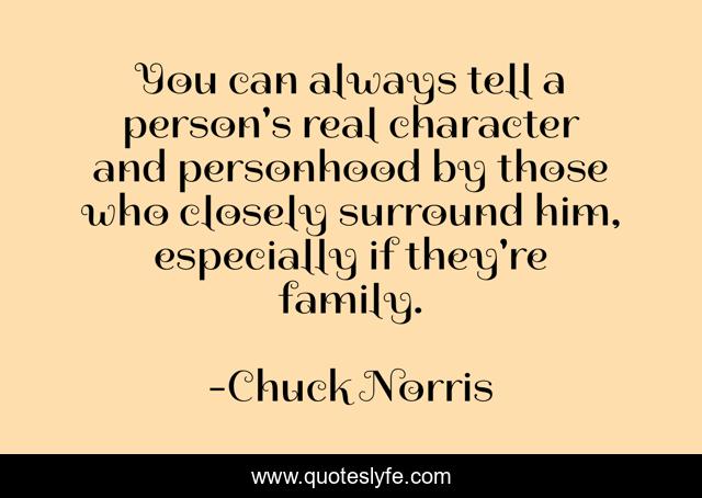 This page presents the quote "You can always tell a person's real character and personhood by those who closely surround him, especially if they're family.". Author of this quote is Chuck Norris. This quote is about person, character,.
