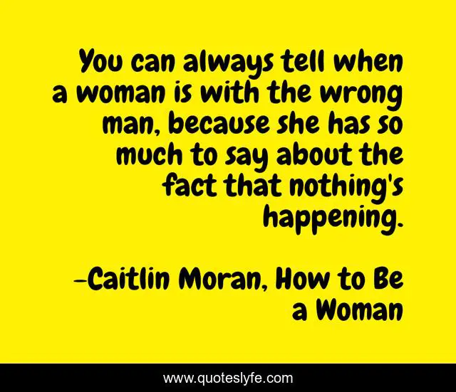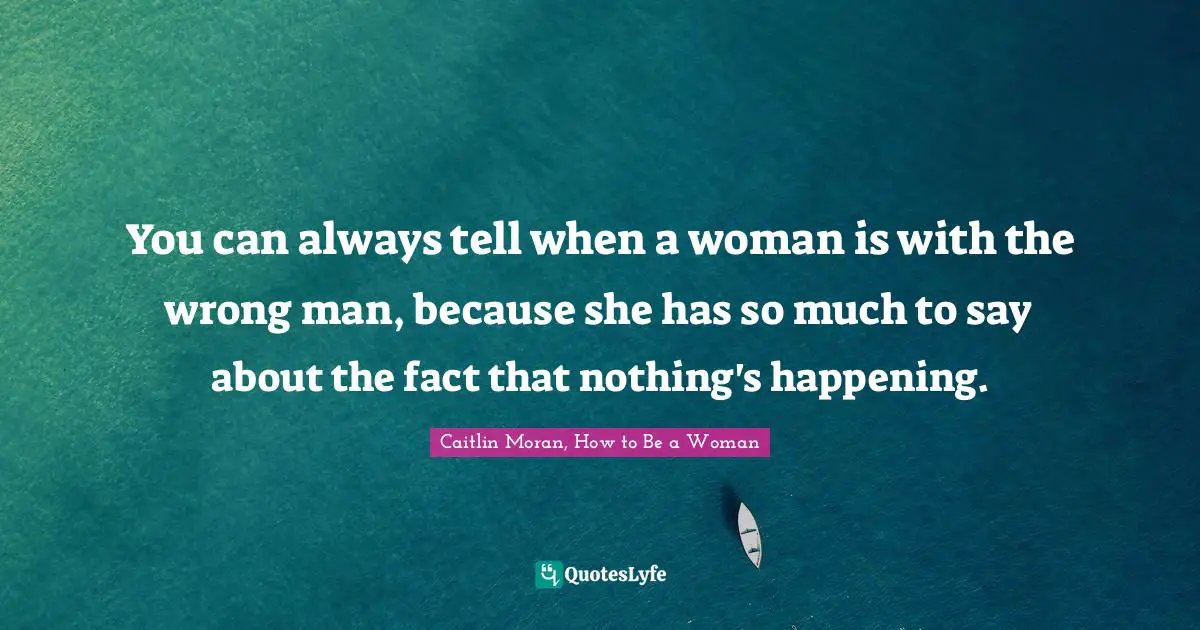 This page presents the quote "You can always tell when a woman is with the wrong man, because she has so much to say about the fact that nothing's happening.". Author of this quote is Caitlin Moran, How to Be a Woman. .