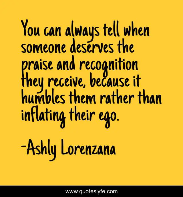 This page presents the quote "You can always tell when someone deserves the praise and recognition they receive, because it humbles them rather than inflating their ego.". Author of this quote is Ashly Lorenzana. This quote is about compliments, humbleness, ego, praise, recognition,.