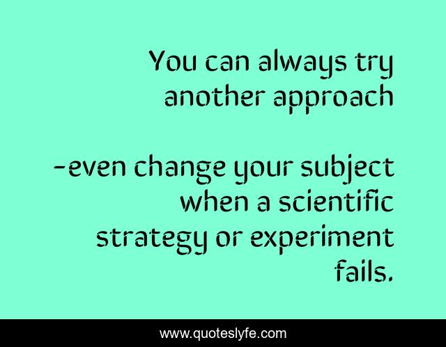 "even change your subject when a scientific strategy or experiment fails. Quotes." Quoteslyfe.com, 2025. Sat. 06 Dec. 2025. <https://www.quoteslyfe.com/quote/You-can-always-try-another-approach-235487>.