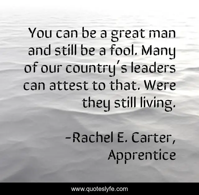 This page presents the quote "You can be a great man and still be a fool. Many of our country’s leaders can attest to that. Were they still living.". Author of this quote is Rachel E. Carter, Apprentice. This quote is about magic, ryiah, darren, romance, fantasy, young-adult, prince,.