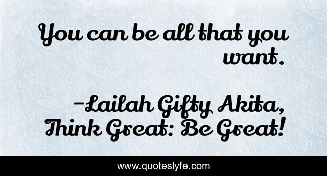 "Lailah Gifty Akita, Think Great: Be Great! Quotes." Quoteslyfe.com, 2025. Fri. 05 Dec. 2025. <https://www.quoteslyfe.com/quote/You-can-be-all-that-you-want-253257>.
