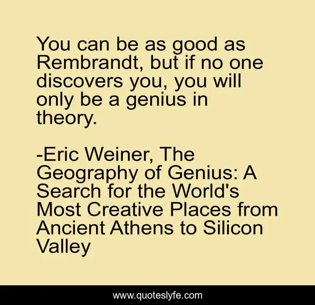 "Eric Weiner, The Geography of Genius: A Search for the World's Most Creative Places from Ancient Athens to Silicon Valley Quotes." Quoteslyfe.com, 2025. Sat. 06 Dec. 2025. <https://www.quoteslyfe.com/quote/You-can-be-as-good-as-Rembrandt-230813>.