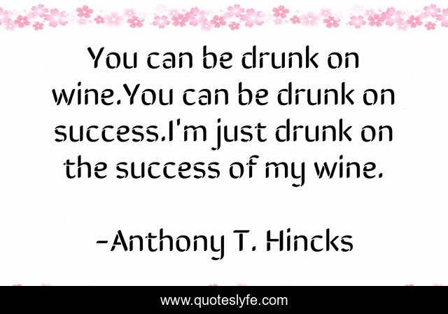 This page presents the quote "You can be drunk on wine.You can be drunk on success.I'm just drunk on the success of my wine.". Author of this quote is Anthony T. Hincks. This quote is about drunk, drink, philosophy, success, wine,.