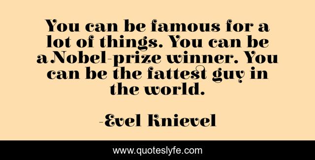 This page presents the quote "You can be famous for a lot of things. You can be a Nobel-prize winner. You can be the fattest guy in the world.". Author of this quote is Evel Knievel. This quote is about world, winner,.