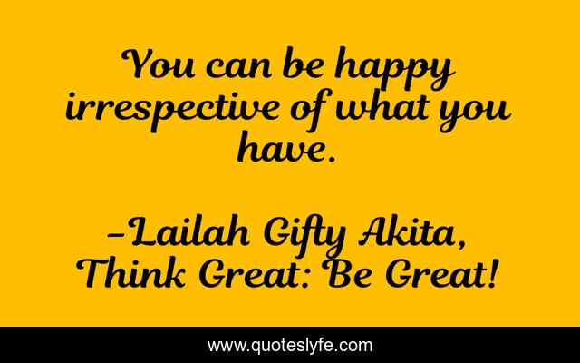 "Lailah Gifty Akita, Think Great: Be Great! Quotes." Quoteslyfe.com, 2025. Fri. 05 Dec. 2025. <https://www.quoteslyfe.com/quote/You-can-be-happy-irrespective-of-what-85015>.