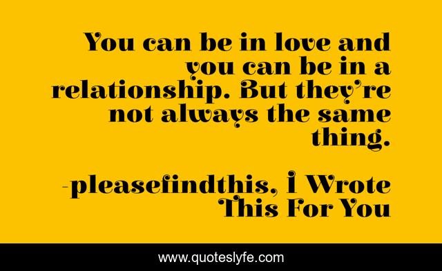 This page presents the quote "You can be in love and you can be in a relationship. But they’re not always the same thing.". Author of this quote is pleasefindthis, I Wrote This For You. This quote is about relationships, being-in-love, love, relationship, affection,.