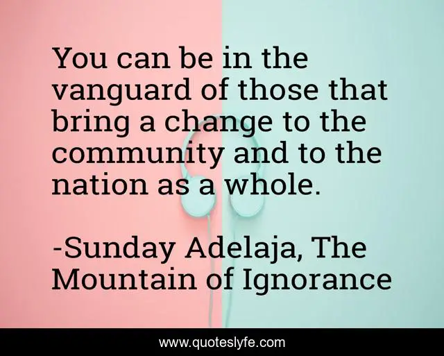 This page presents the quote "You can be in the vanguard of those that bring a change to the community and to the nation as a whole.". Author of this quote is Sunday Adelaja, The Mountain of Ignorance. This quote is about mountain, life, darkness, power, danger, god, people, ignorance, community,.
