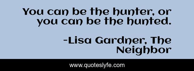 "Lisa Gardner, The Neighbor Quotes." Quoteslyfe.com, 2025. Mon. 08 Dec. 2025. <https://www.quoteslyfe.com/quote/You-can-be-the-hunter-or-you-217663>.